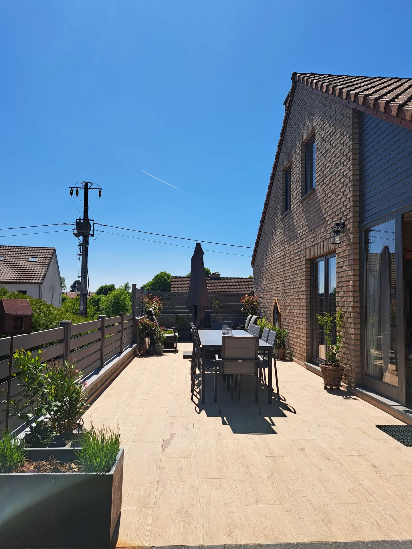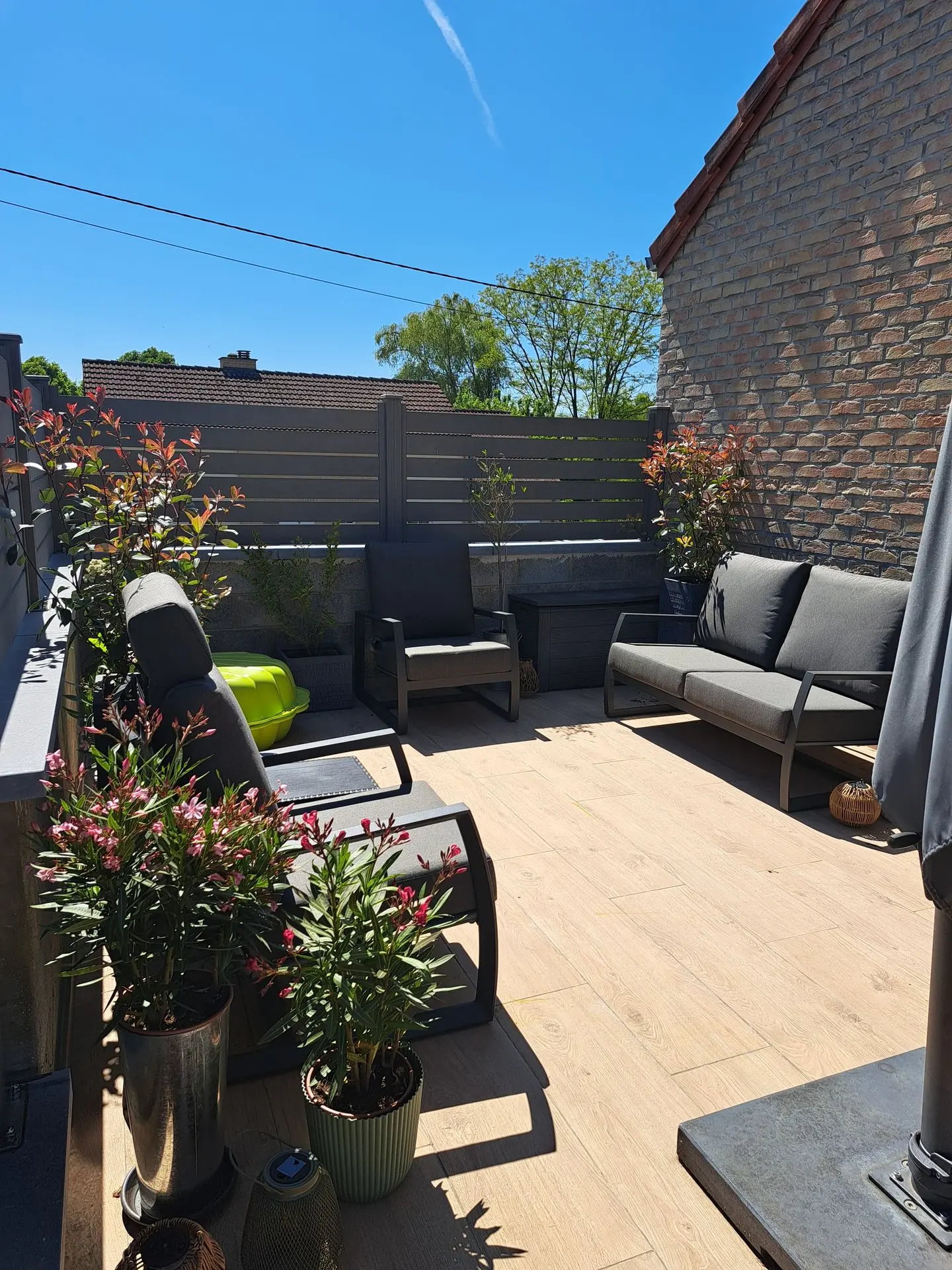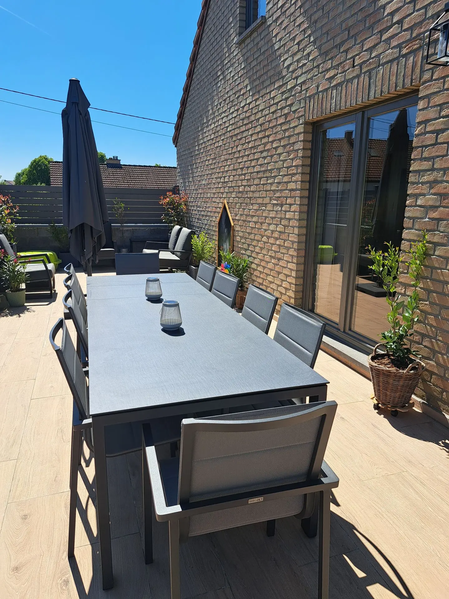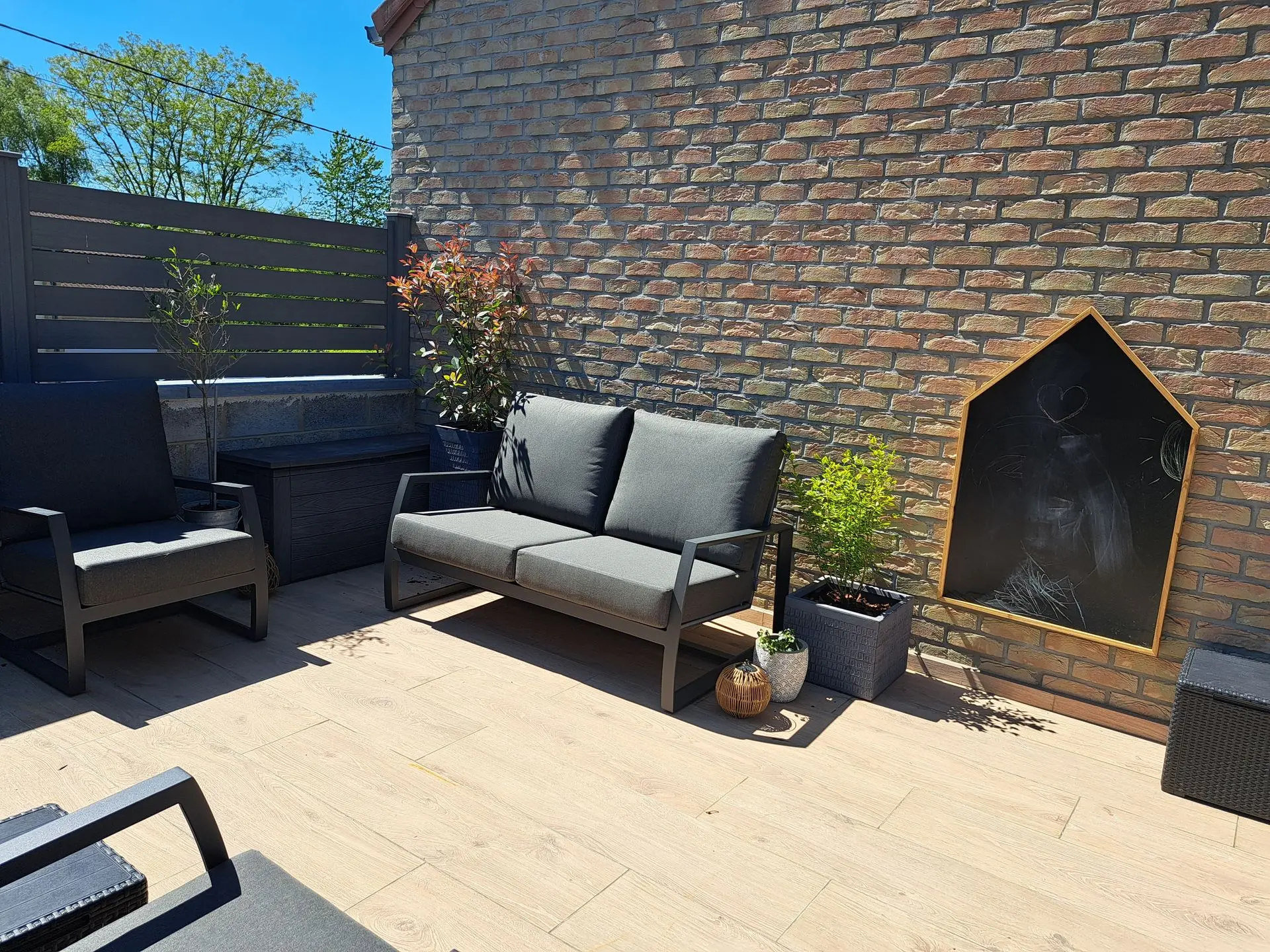 Terrasse aménagée à Virton avec du mobilier anthracite.